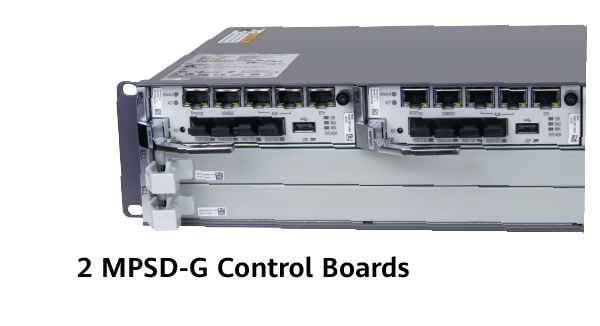 The set includes 2 MPSD-G control boards, which also serve as uplink (upstream) boards. Each board features 4 SFP+ slots that can function as uplink or cascade ports. These ports support transmission speeds of 1 or 10 Gbps. Additionally, the board is equipped with an RJ45 console port, a BITS/TOD port, two RJ45 alarm ports, and an extra Ethernet port for communication.