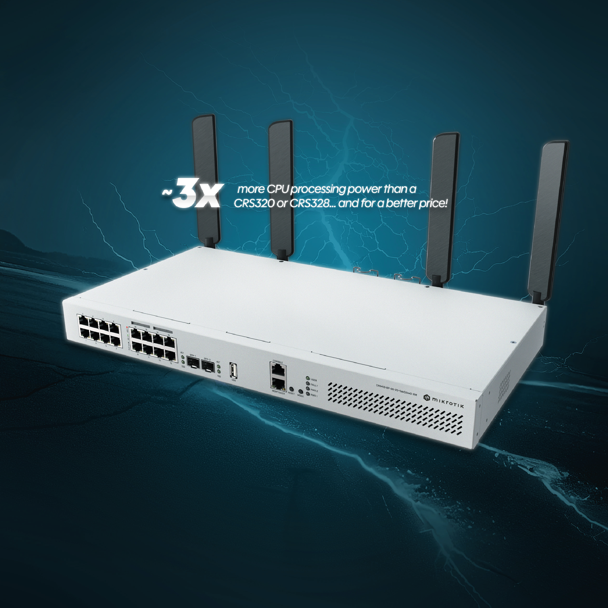 The offered product is a unique solution that combines the functions of a router, switch, and access point. It comes with RouterOS v7 and a Level 5 license, and is equipped with a quad-core IPQ-8072A processor clocked at 2208 MHz along with 1 GB of DDR3 RAM. Its performance surpasses that of standard MikroTik home wireless routers while also delivering significantly better parameters than popular switches such as the CRS320-8P-8B-4S+RM and CRS328-24P-4S+RM. In homes and small offices, it allows for a substantial reduction in the number of devices, making it an excellent choice as the main component in such networks.