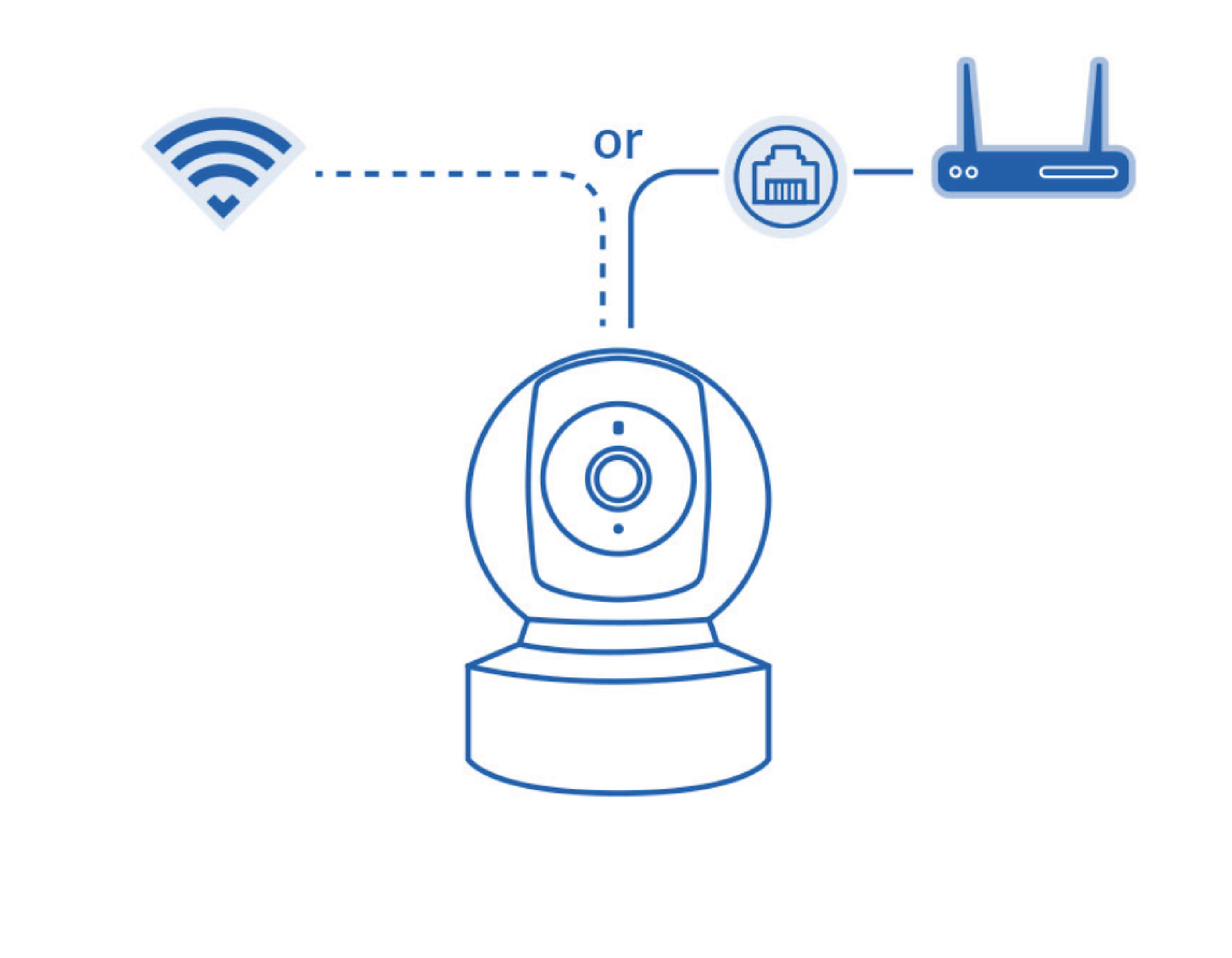 You can connect the camera to the network either wirelessly via Wi-Fi or through a wired Ethernet connection.