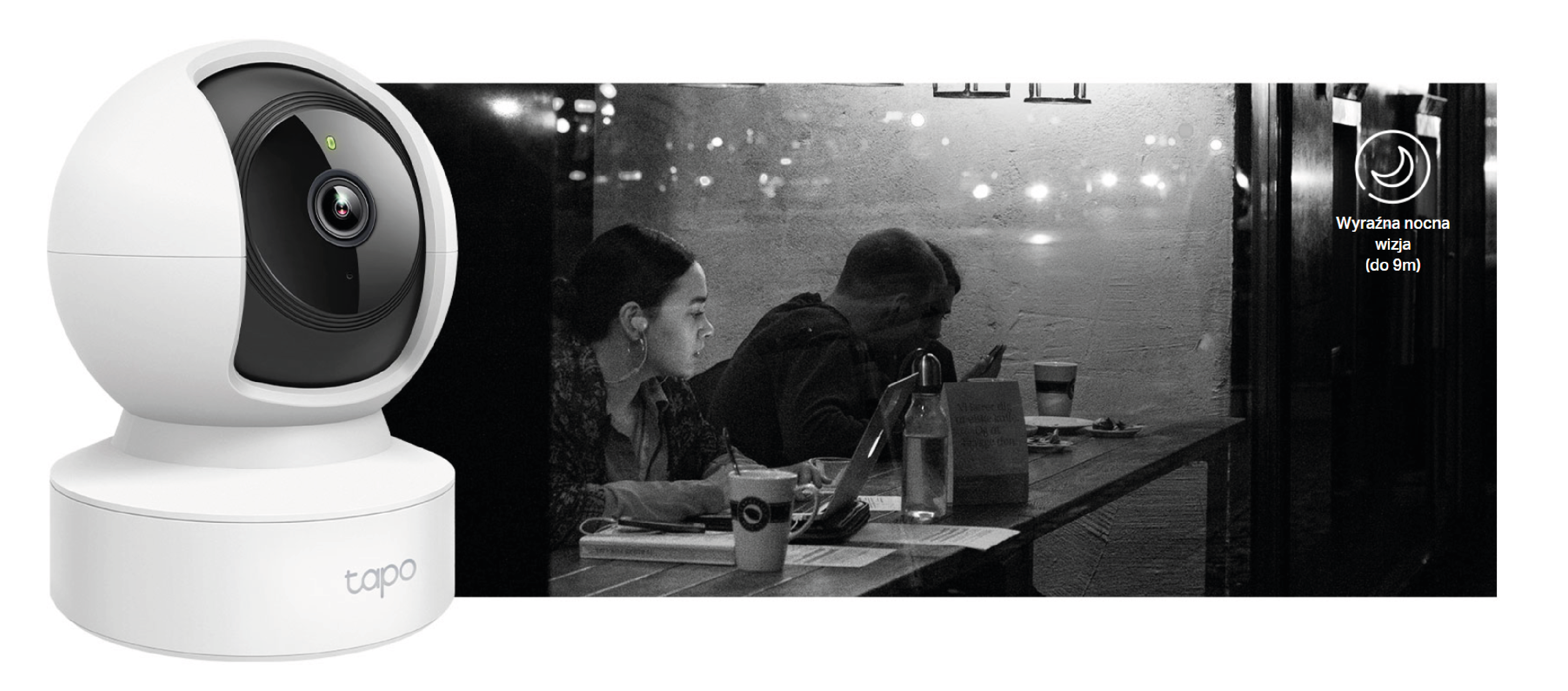 The device uses 2.4 GHz Wi-Fi (IEEE 802.11 b/g/n) connectivity, so no Ethernet cable is required, and the camera can be easily moved between rooms. Operation and live view are managed via the intuitive Tapo app, available for Android and iOS.