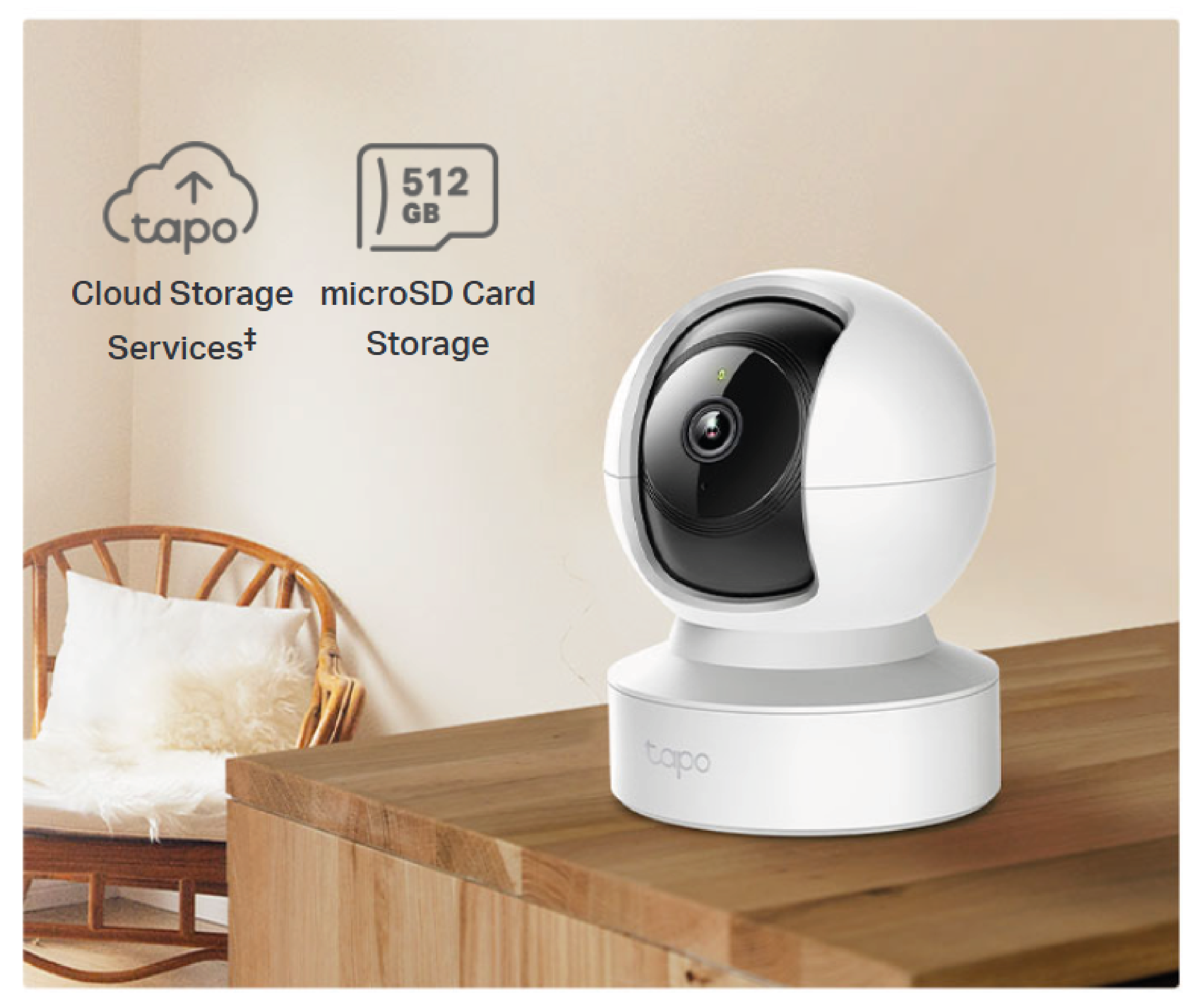 Store recordings on a microSD card* (up to 512 GB) or in the cloud with the Tapo Care service.