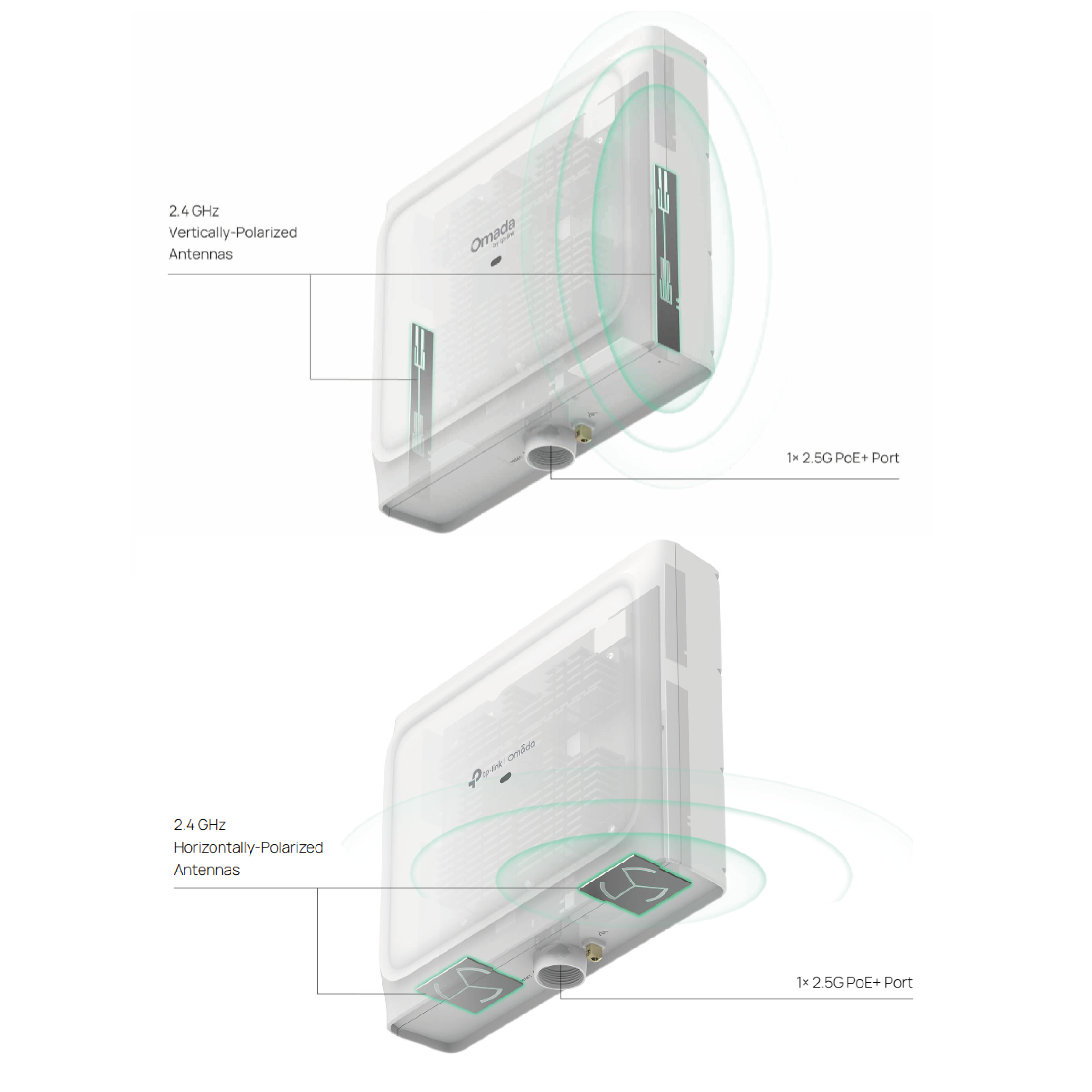 The EAP772-Outdoor is equipped with a 2.5G RJ45 port with PoE+ support, providing high data throughput for applications such as smooth live streaming and 4K video. Additionally, its dual-polarized 2.4 GHz antennas improve resistance to interference.