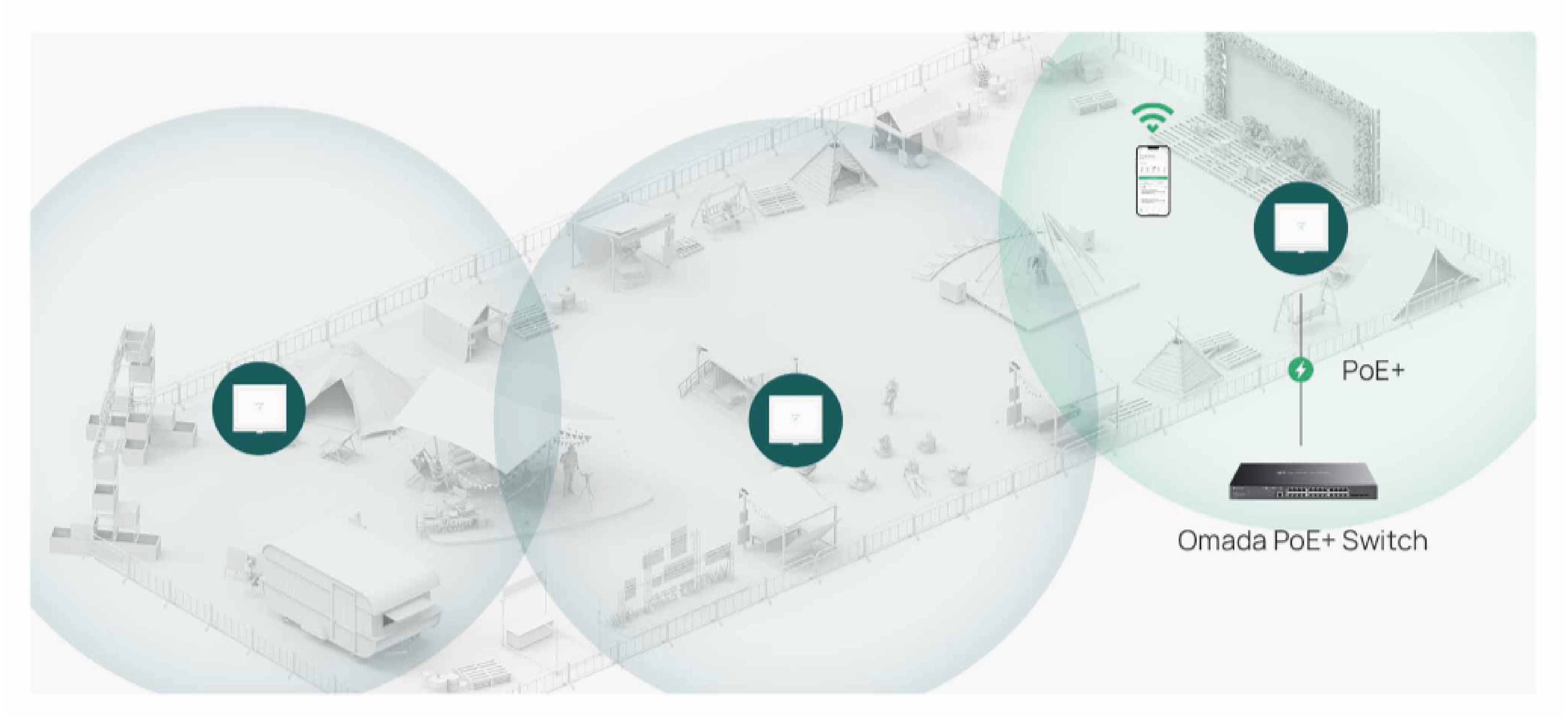 Unlock clean, outdoor 6 GHz spectrum — supported by AFC. The EAP772-Outdoor eliminates congestion and delivers tri-band omnidirectional coverage across 2.4 GHz, 5 GHz, and 6 GHz. Coverage of up to 300 m² ensures smooth network performance outdoors.