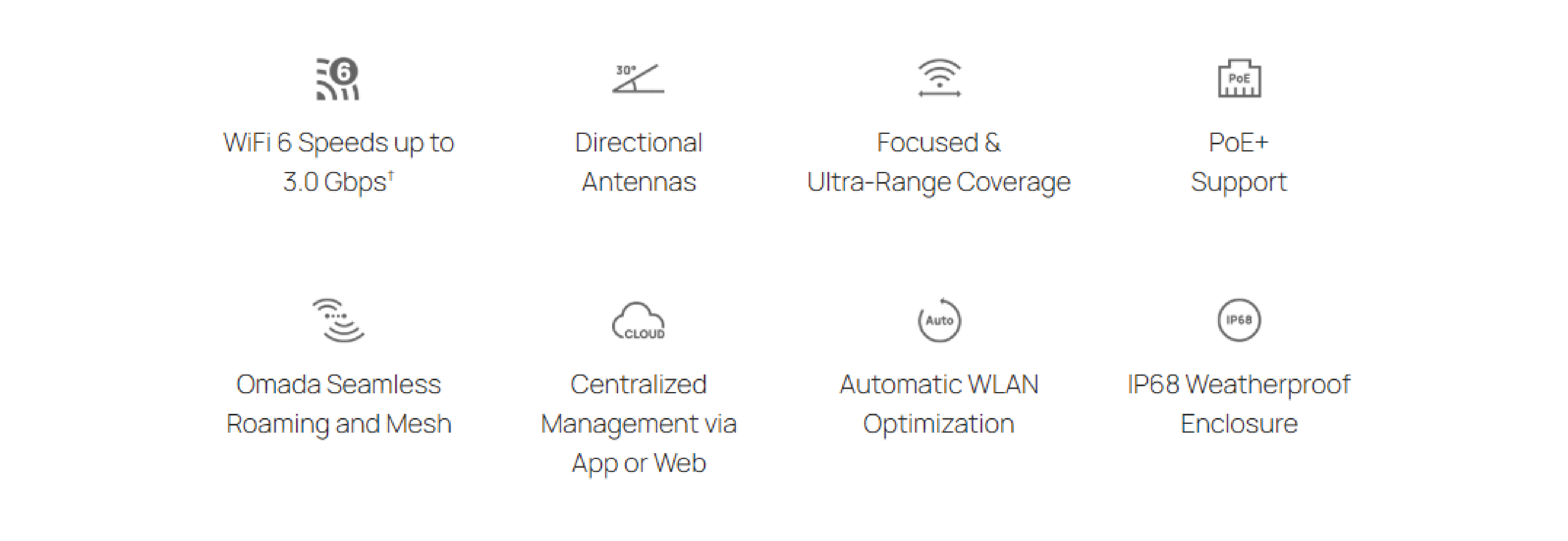 4 built-in, high-gain, dual-band directional antennas ensure optimal Wi-Fi performance, offering precise and wide area coverage with signal.