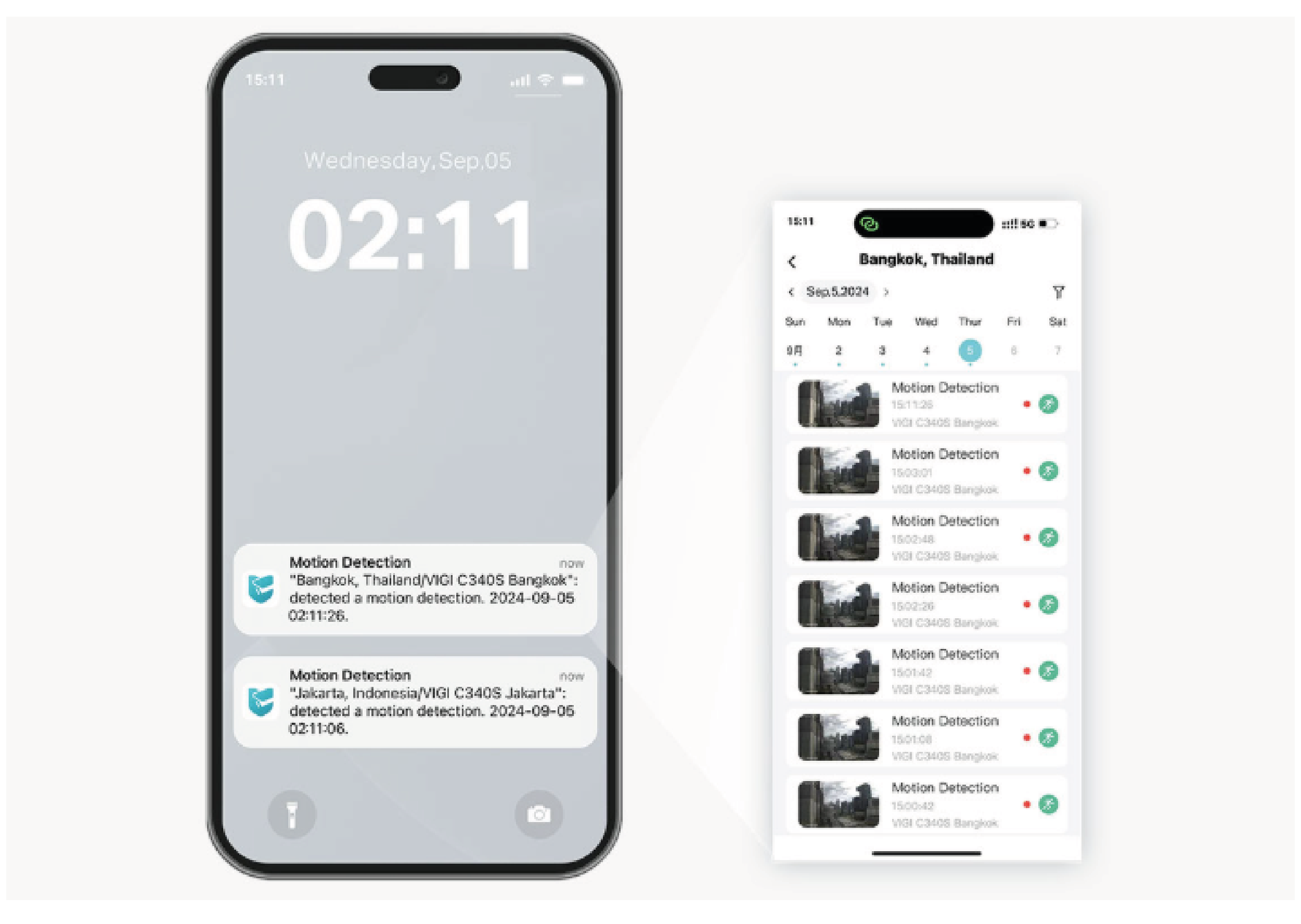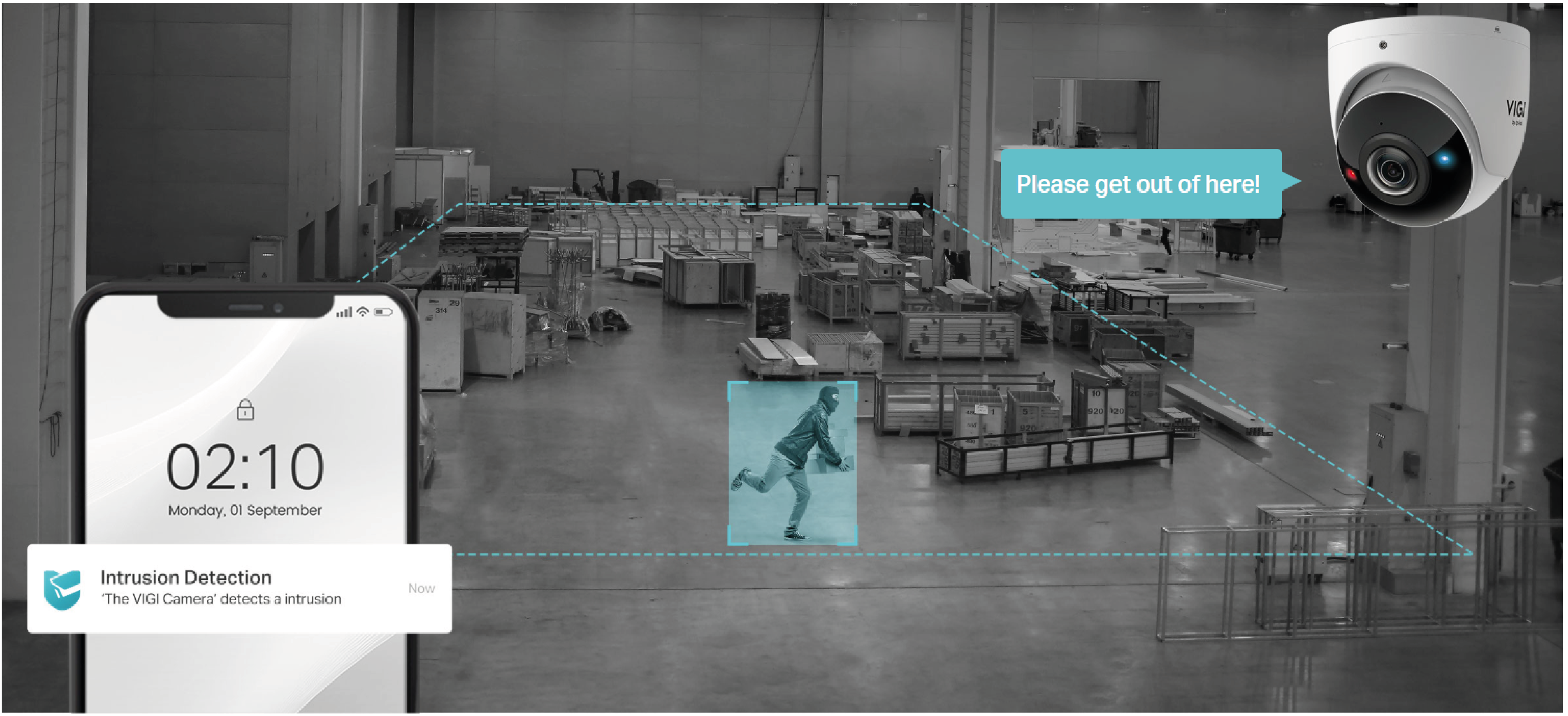 When the AI function or an external alarm device detects an event, an alarm is instantly triggered and an alert is sent to your phone.