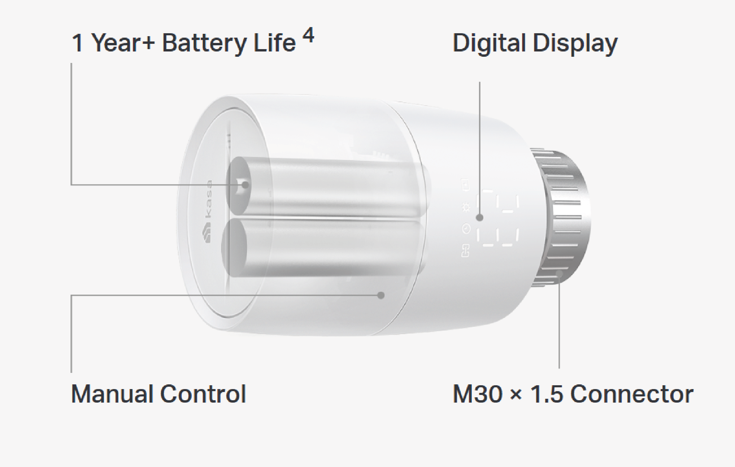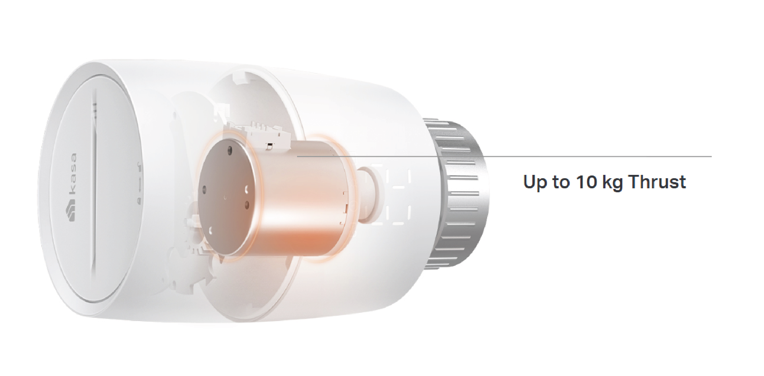 The TP-Link Kasa Smart KE100 is a Thermostatic Radiator Valve designed to control the radiator valve. The device communicates wirelessly with a Kasa Smart Hub (required for operation, sold separately or in a kit with the Hub). The user can control the valve and temperature using the Kasa Smart mobile application (available for Android / iOS) from anywhere and at any time. The thermostat is compatible with voice assistants such as Google Assistant and Alexa, allowing control via voice commands. The mobile application allows for creating personalized thermostat schedules and introducing simple automation rules. The set includes mounting adapters, ensuring compatibility with most standard radiator valves on the market.