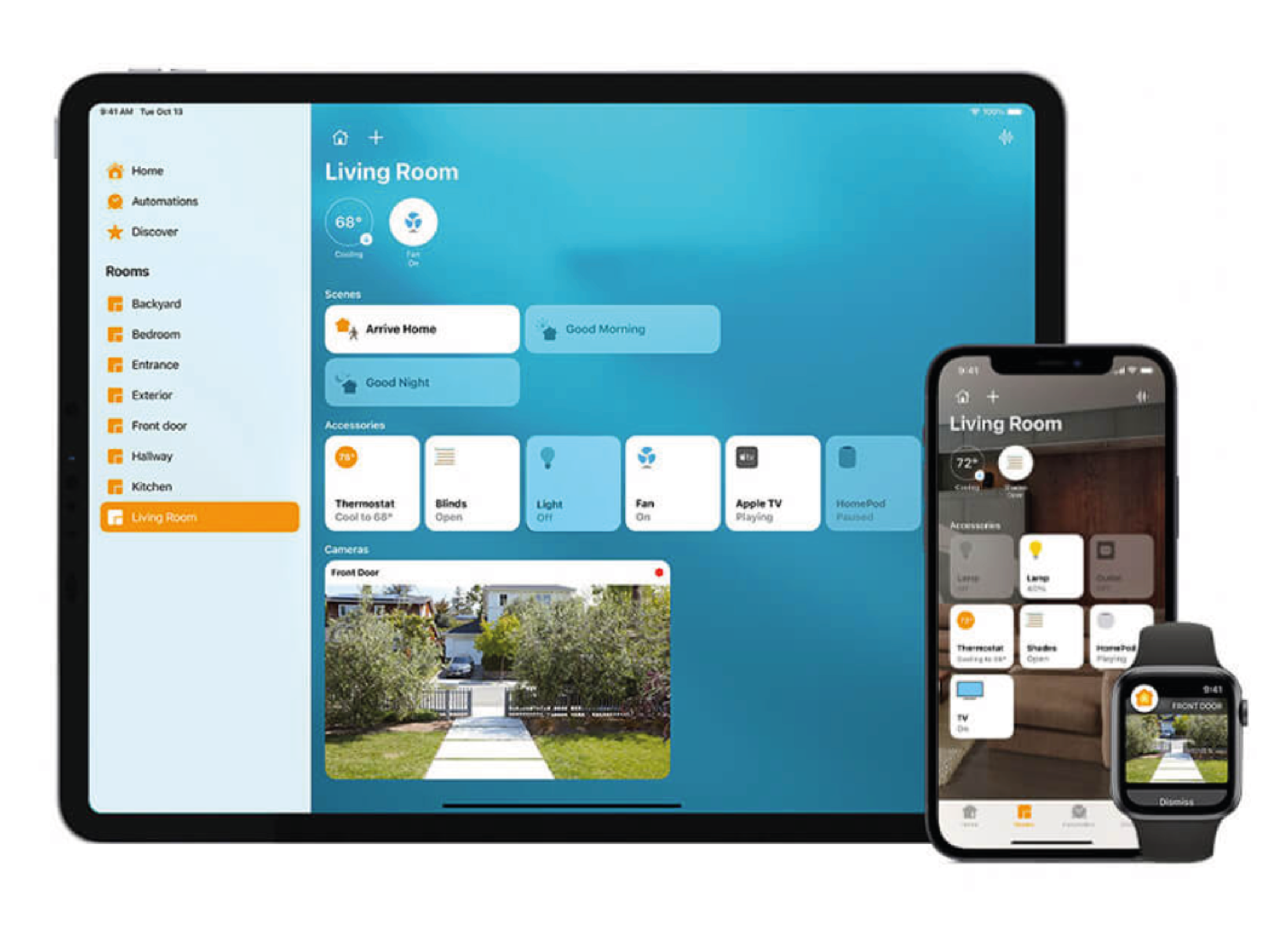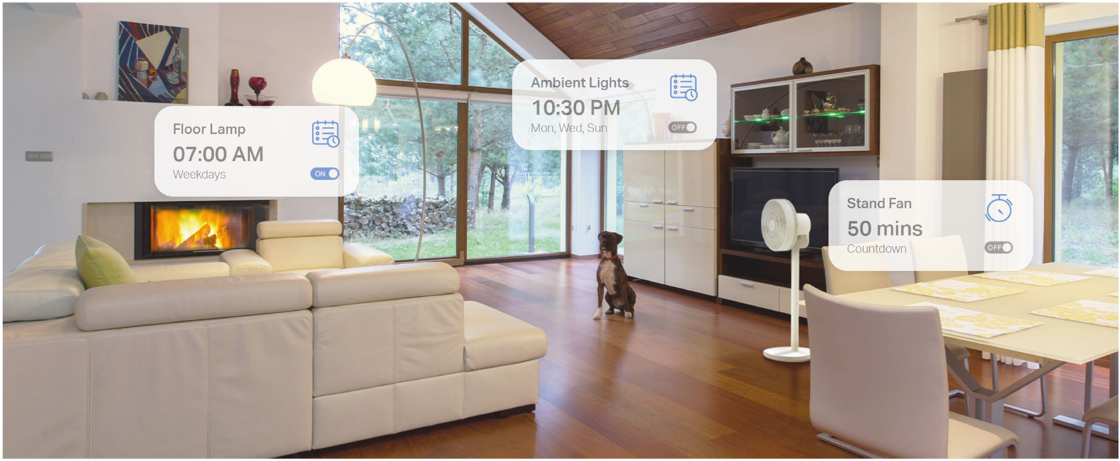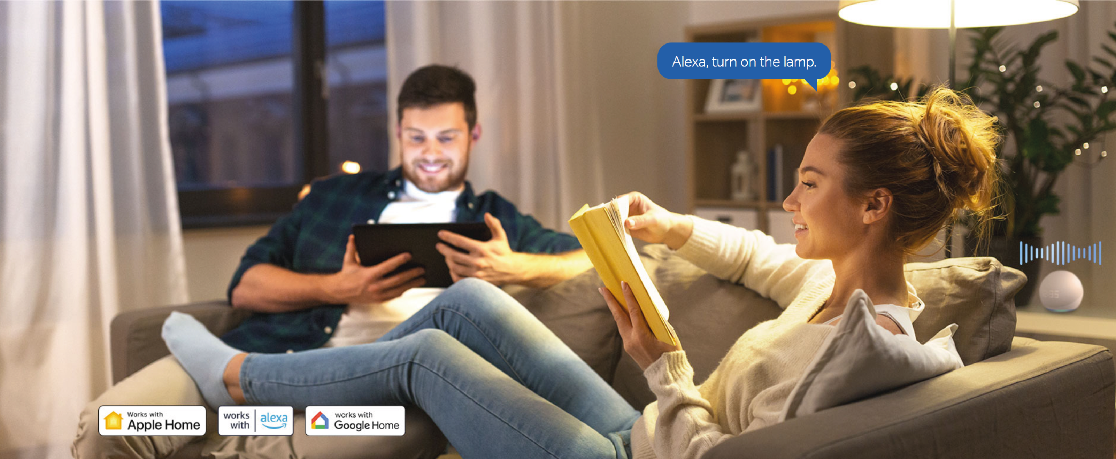 Kontroluj oświetlenie domu, wentylatory i wiele innych, korzystając z aplikacji Apple Home i Siri na Twoim iPhone, iPad, Apple Watch, HomePod lub komputerze Mac.