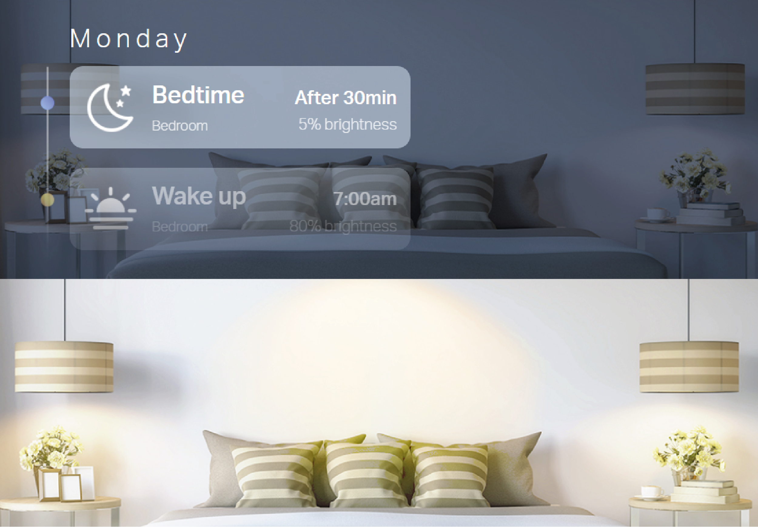Create regular schedules and countdown plans for turning on/off at a set brightness. Sunrise and Sunset modes allow the bulb to activate automatically according to your time zone.