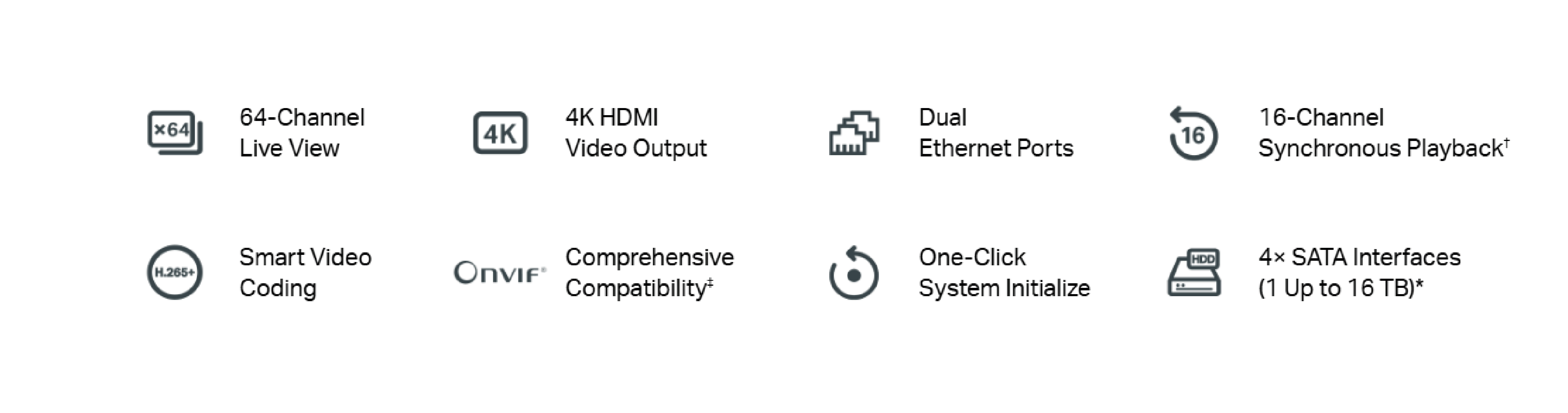 16 Channels @2MP, 32 Channels @720P, 64 Channels @D1