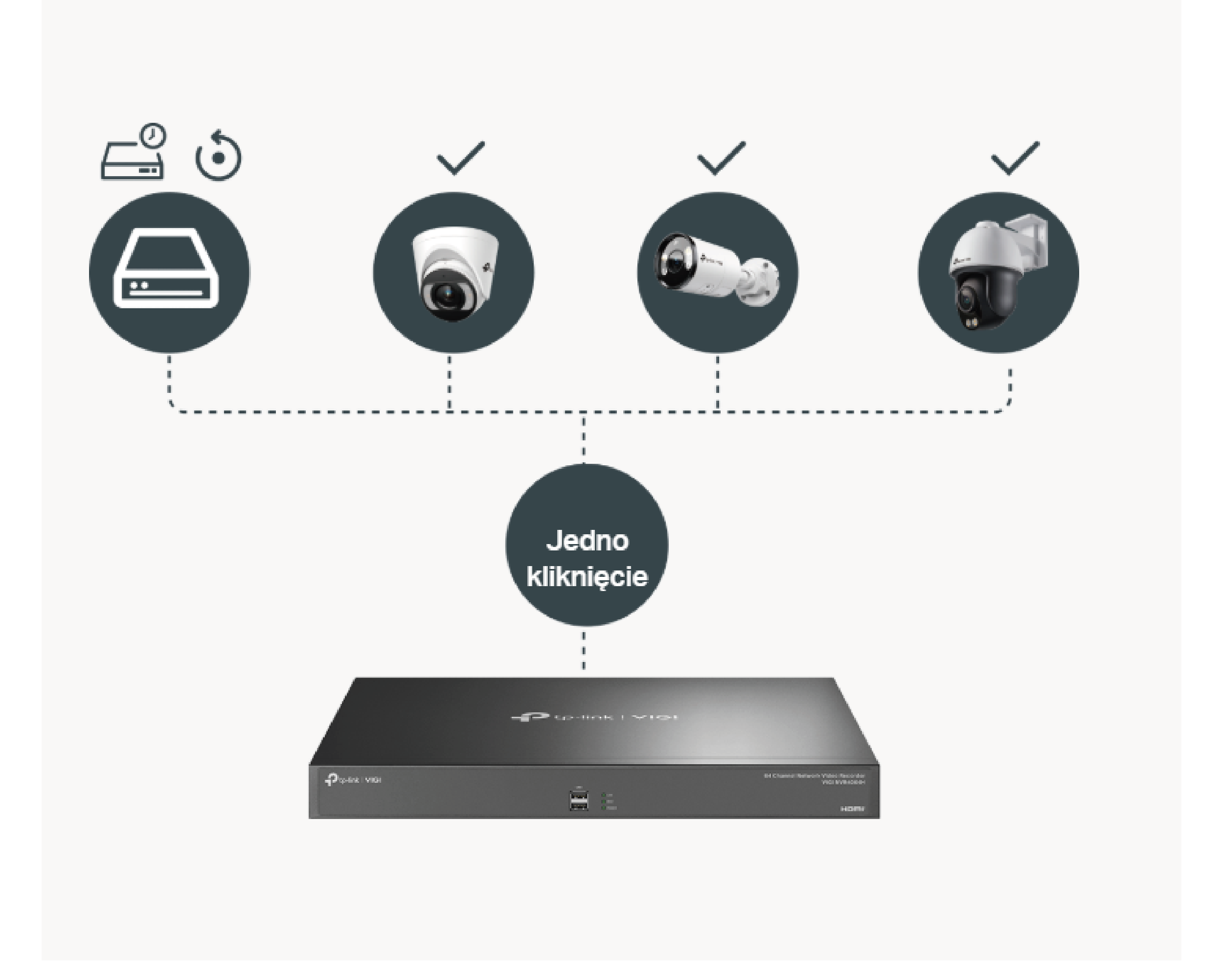 TP-Link VIGI NVR4064H is a professional IP recorder designed for extensive VIGI monitoring systems. It supports up to 64 video channels, enabling the creation of a comprehensive and scalable surveillance network. The recorder is equipped with four SATA connectors, to which you can connect hard disk drives with a total capacity of up to 40 TB (maximum 10 TB per disk), ensuring a long time for recording archival. A key advantage is the support for modern and efficient data encoding H.265+, which significantly reduces the size of recorded footage and the required bitrate, optimizing the use of disk space. The recorder supports the ONVIF standard, allowing integration and cooperation with IP cameras from other manufacturers as well. The total supported bandwidth of the recorder is 320 Mb/s, which provides sufficient reserve for simultaneous operation of many high-resolution cameras (e.g., 64 x 5 Mpix cameras). The recorder is managed via the TP-Link VIGI software, which is available for both PCs and mobile devices, offering full control over the monitoring system.