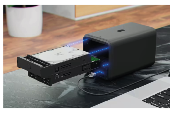 The device features a 2.5G Ethernet port, which provides higher transmission bandwidth compared to the commonly used 1G ports. This enables fast file uploads and downloads within the local network. An additional USB Type-C connector allows you to connect an external hard drive; the USB throughput is 5 Gb/s.