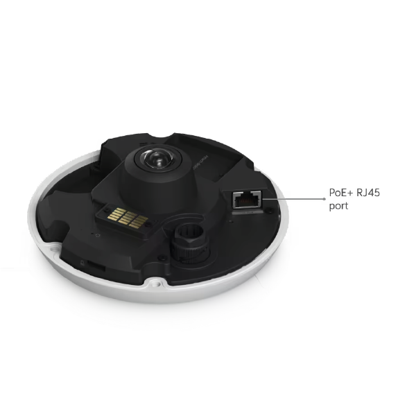 Ubiquiti G6 Pro 360 is an IP camera designed to operate within the UniFi Protect system. It features a fisheye lens with a field of view of 180° horizontally and 180° vertically. The maximum resolution is 12 MP – 3504 × 3504 px (1:1), providing very good image quality. The enclosure is adapted for outdoor installation, with an IP66 protection rating and IK10 mechanical resistance. Using the accessories included in the set, the camera can be mounted directly on a wall or ceiling, or on a suspended / cassette ceiling. The G6 Pro 360 supports night mode (black-and-white using IR LEDs), with a maximum night recording range of 15 m. An additional advantage is support for intelligent detection of people, vehicles, and animals. The camera has a built-in microphone and speaker, enabling two-way voice communication and sound recording. A microSD card can be installed in the device, allowing recordings to be stored without the need for an additional hard drive. The G6 Pro 360 has 1 Fast Ethernet port and can be powered via PoE+ (802.3at); the maximum power consumption is 7.14 W.