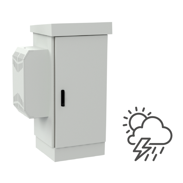 The cabinet features a dual-wall design with double walls containing air in between, acting as an additional thermal insulator to protect the equipment inside. Along with the product, you receive an integrated 720 W air conditioner. The air conditioner allows for cooling the interior of the cabinet, prevents devices from overheating, and significantly extends their lifespan.