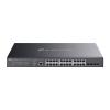 The SG3428XMPP is an L2+ managed switch integrated into the Omada SDN system, equipped with 16 Gigabit RJ45 ports supporting the PoE+ standard and 8 Gigabit RJ45 ports supporting the high-power PoE++ standard. The device features 4 SFP+ 10 Gbps slots dedicated to high-speed core connections and link aggregation, eliminating data transmission bottlenecks. The switch supports L3 static routing functions and advanced security mechanisms such as Access Control Lists (ACL) and IP-MAC-Port-VID binding, ensuring secure network segmentation. The 19-inch Rack standard design allows for installation in server cabinets, and administration is handled centrally via the Omada SDN platform or locally through the CLI interface and SNMP protocol.