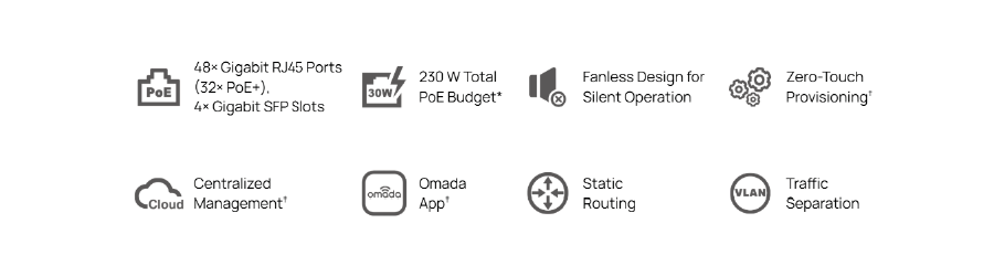TP-Link SG2452LP Omada switch 32x GE PoE+, 16x GE, 4x GE SFP