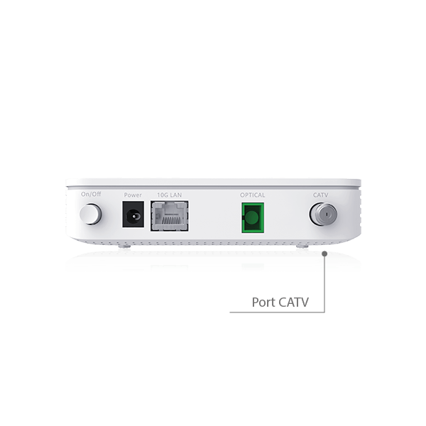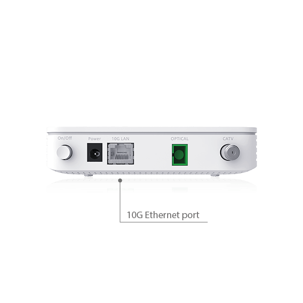 Huawei EN8012Ts-20 is a bridge-type ONT customer terminal designed for use in XGS-PON networks. It features an SC/APC optical connector, receive sensitivity of -27 to -29 dBm, and a maximum throughput of 10 Gb/s in accordance with the standard. The ONT is equipped with 1× 10G Ethernet port and additionally with an antenna connector (RF) that supports CATV. It will work perfectly in all networks using CATV and XGS-PON, enabling the delivery of television and high-bandwidth internet to the subscriber. The offered product is a bridge-type terminal without routing support; it has all necessary functions, enables multicast transmission, and supports IGMP and MLD Snooping.