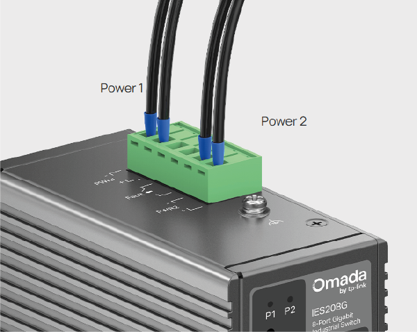 Two power input connectors with a wide voltage range of 9.6-60V DC ensure continuous device operation even if one power supply fails.