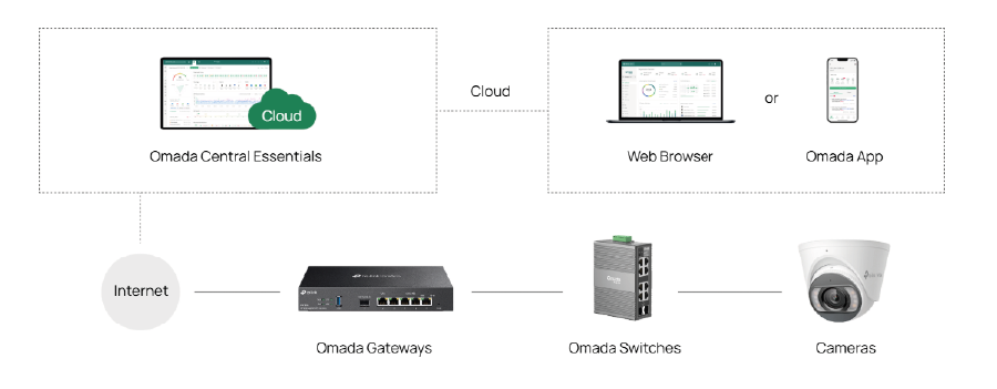 - Free, simple, and centralized cloud management via Omada Central Essentials