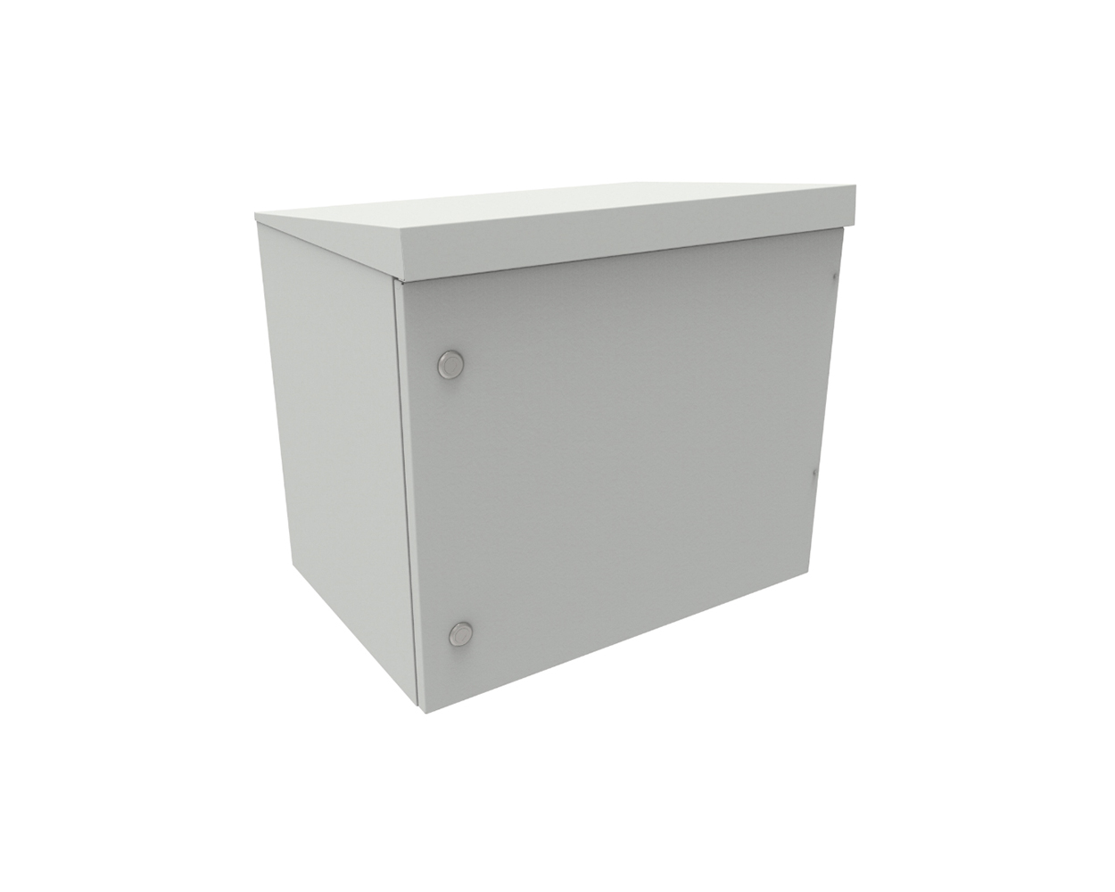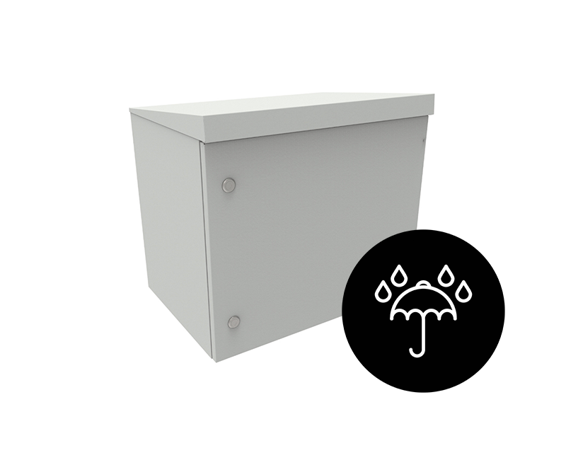 The offered product is a hermetic cabinet designed for outdoor use. It is made of steel sheet coated with Magnelis, and then powder-coated in light gray RAL7035. The door is protected against water and dust ingress, with a protection rating of IP65. The cabinet is designed for pole mounting (mounting bracket sold separately). Optionally, it can also be mounted on a wall.