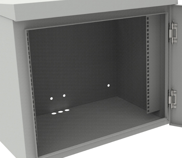 Inside the cabinet there are 19" Rack standard rails with a height of 9U. Thanks to the rails, the offered product is perfectly suitable for installing telecommunication equipment outdoors. The mounting depth is 320 mm.