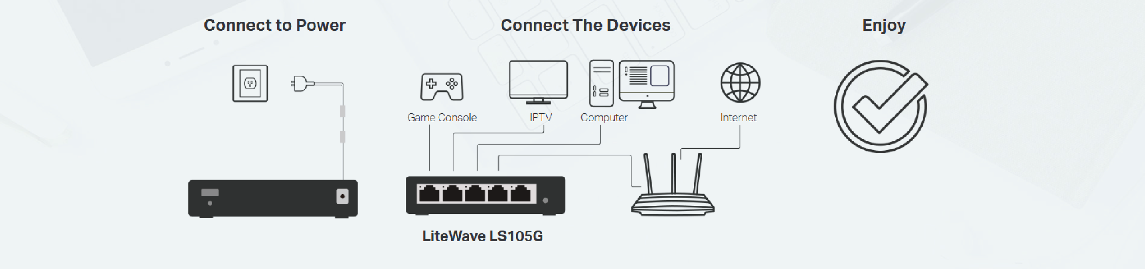 TP-Link's LiteWave series unmanaged switches offer an easy and cost-effective way to expand your wired network. The devices are user-friendly and reliable. Thanks to Plug and Play installation, connecting new devices takes only minutes. All ports support Auto-MDI/MDIX, eliminating the need to waste time selecting the correct cable.