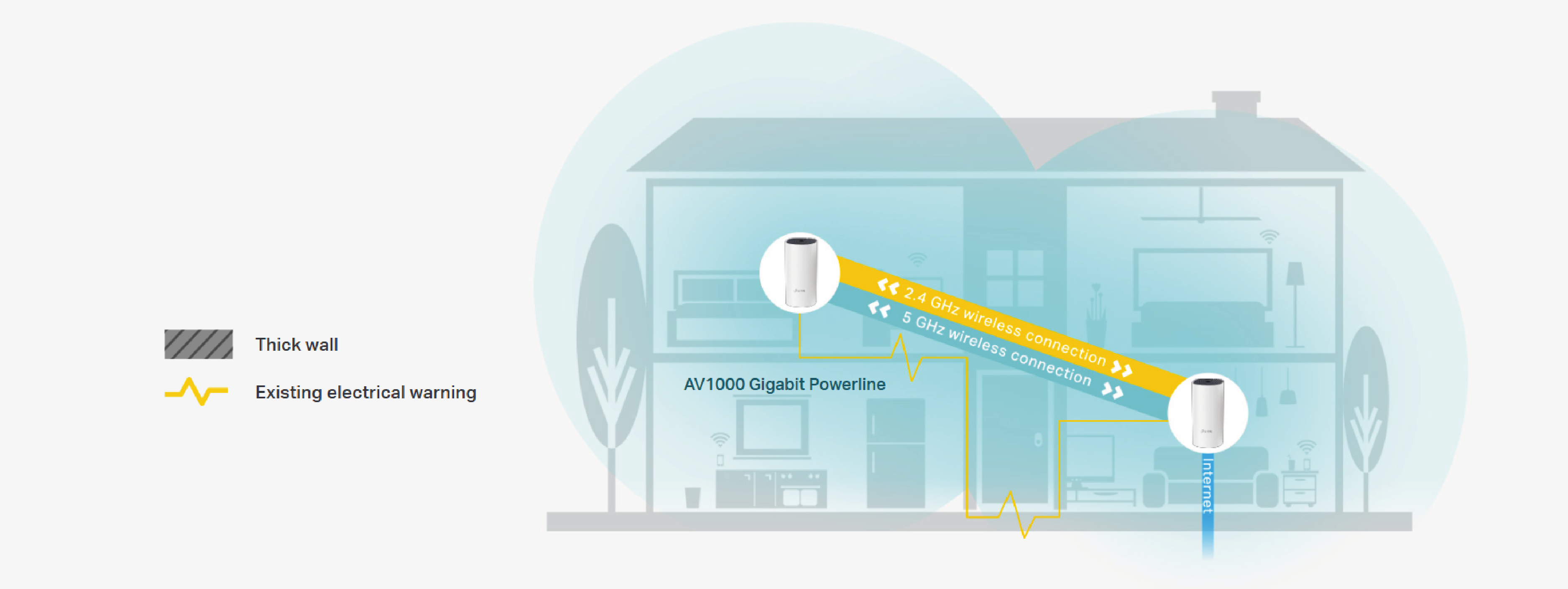 Mesh Wi-Fi Network + PLC Technology: Signal Delivered via Electrical Network