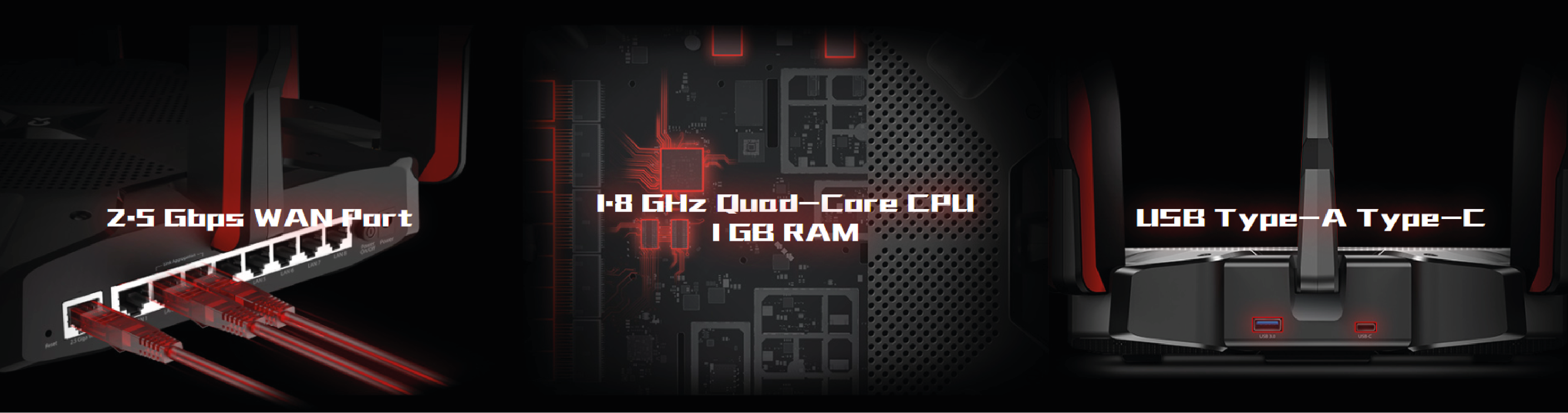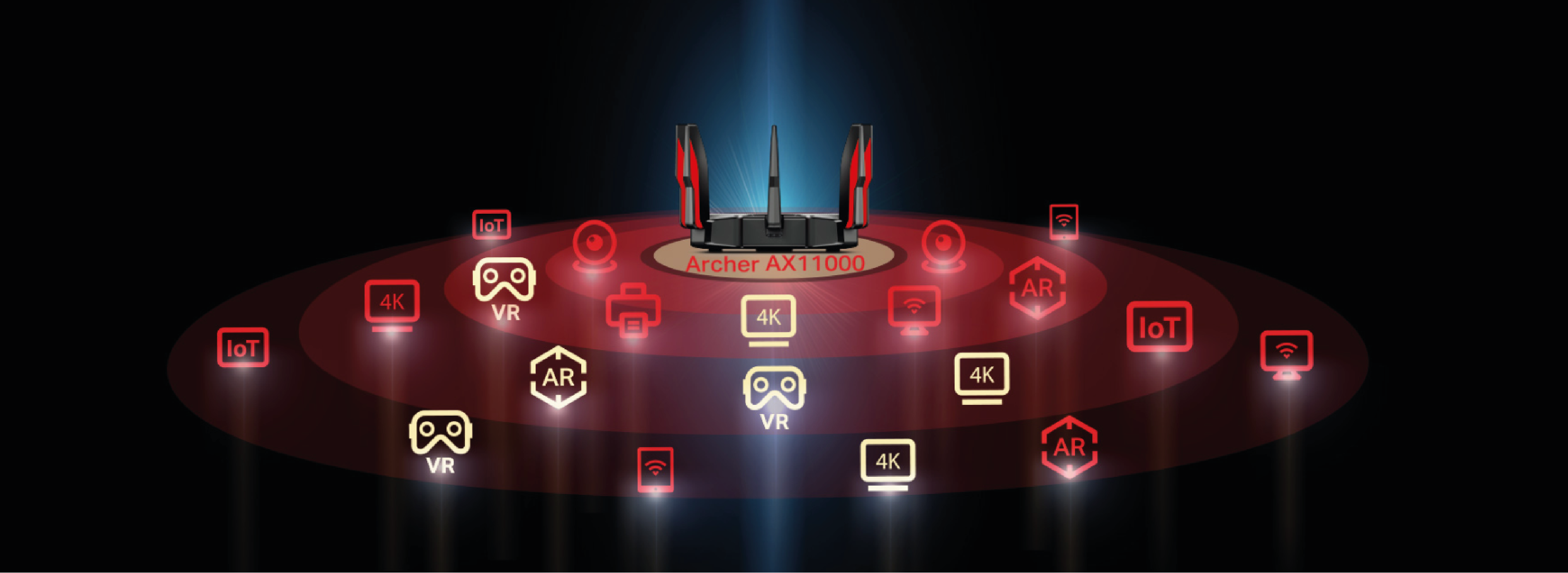 The Archer AX11000, equipped with a 1.8 GHz quad-core processor and 1 GB of RAM, perfectly handles high throughput and eliminates lag. Thanks to the Link Aggregation function and USB 3.0 Type C and A ports, almost any device can connect to your home network.